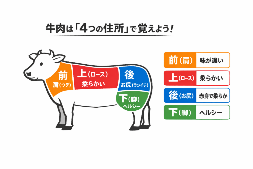 部位の名前を丸暗記するんじゃなくて、 まずは “どこの肉か” を知る。