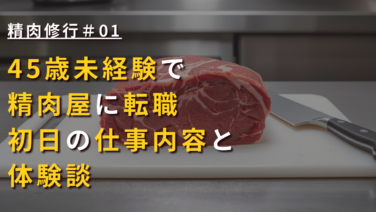 45歳未経験で精肉屋に転職した初日の体験談。仕事内容や1日の流れ、配送業務の実態、職場の雰囲気までリアルに解説。未経験でもきついのか、不安な方に向けた実録記事です。