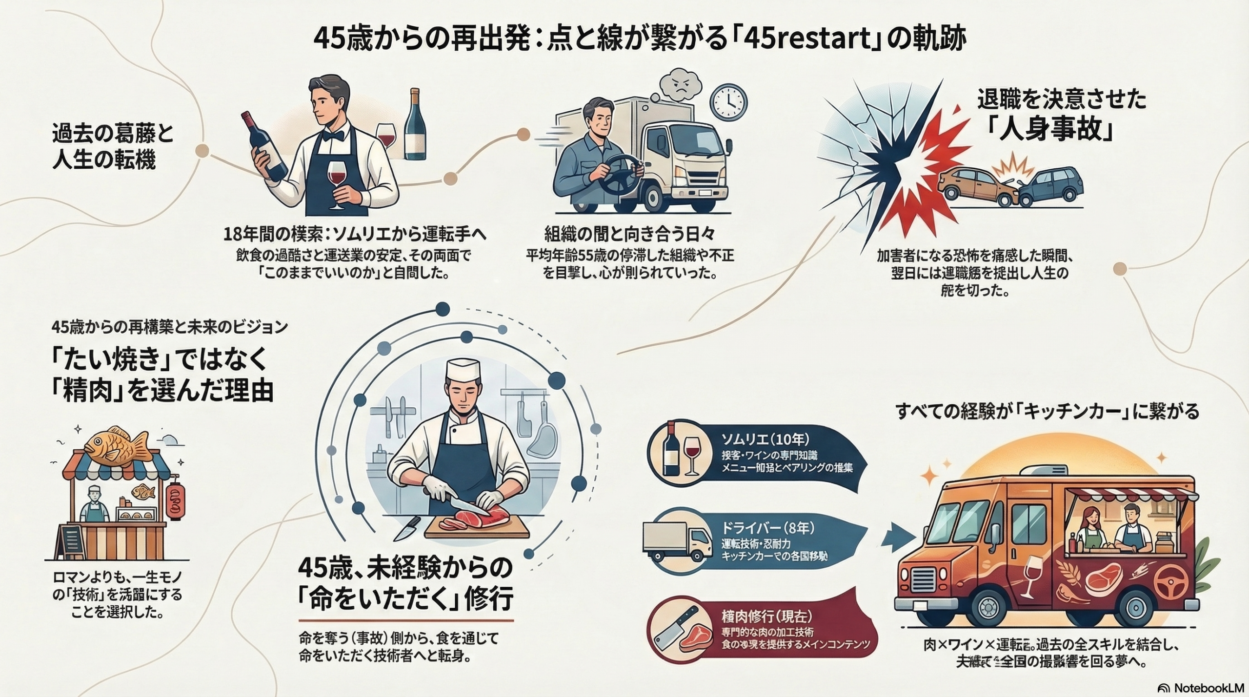 45歳未経験で精肉業界へ。Google NotebookLMの動画解説機能を使い、自分の再挑戦戦略を客観視した記録と具体手順を公開します。