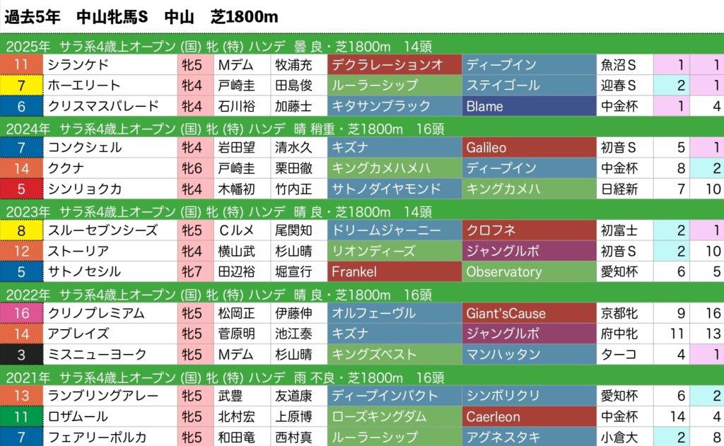 過去5年の中山牝馬