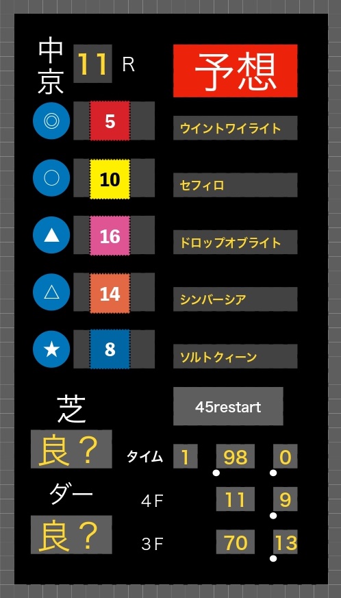- 展開の想定: 先行争いが激化し、直線で脚を伸ばせる馬にチャンスが向くと判断。