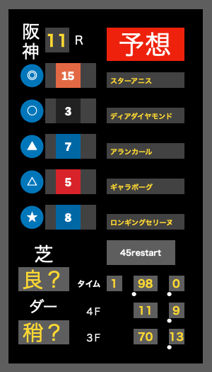 さらに今回は外枠。 阪神外回りは外からスムーズに加速できる馬が有利で、 スターアニスにとってはむしろ“追い風”。