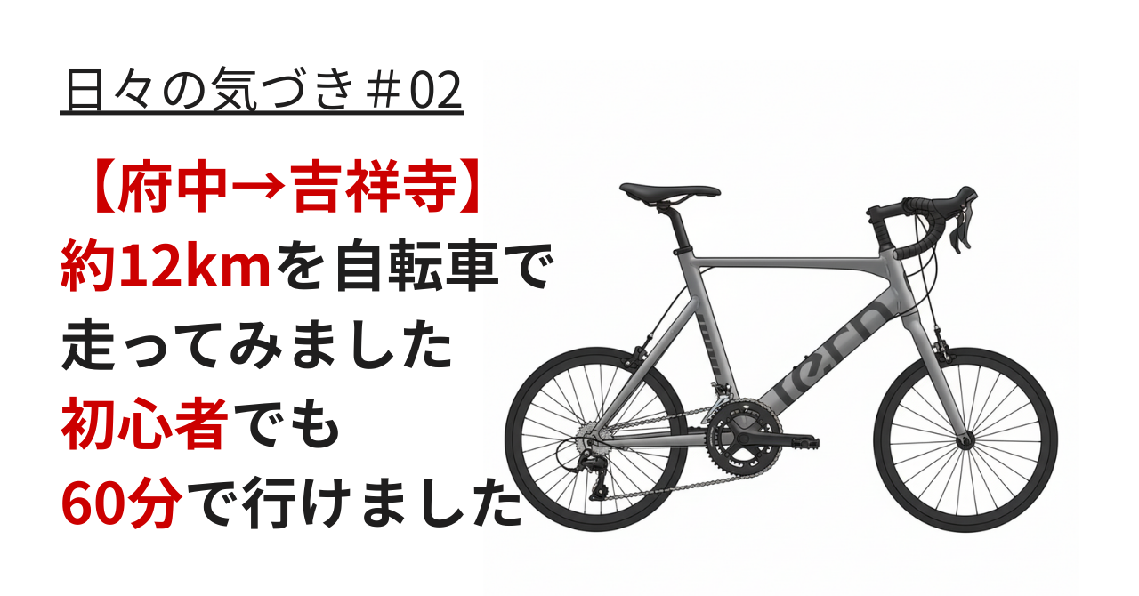 府中から吉祥寺までは、自転車でおよそ12kmあります。